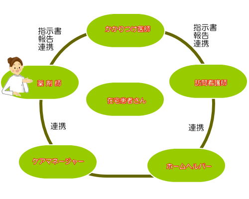 医師の指示があった場合には患者さまのご自宅を訪問し、薬剤師が直接服薬指導も行います。もちろん電話によるご相談にも応じます。